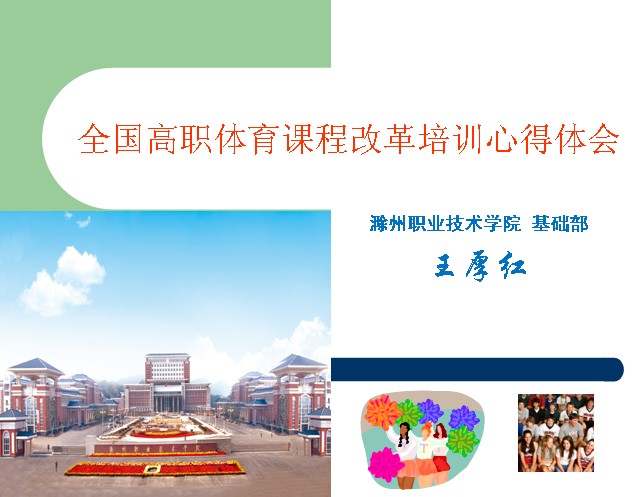 汇报会由基础部副主任梁建军主持。体育教研室王厚红老师就暑假期间赴上海参加的“全国高职体育课程改革”培训做了总结和汇报。汇报分为:培训简介、培训感触和我的思考三部分,王老师结合新葡的京官网健美操课程教学为例,向大家展示了题为“高职体育教、学、演、赛课内外一体化教学模式构思”的个人思考。