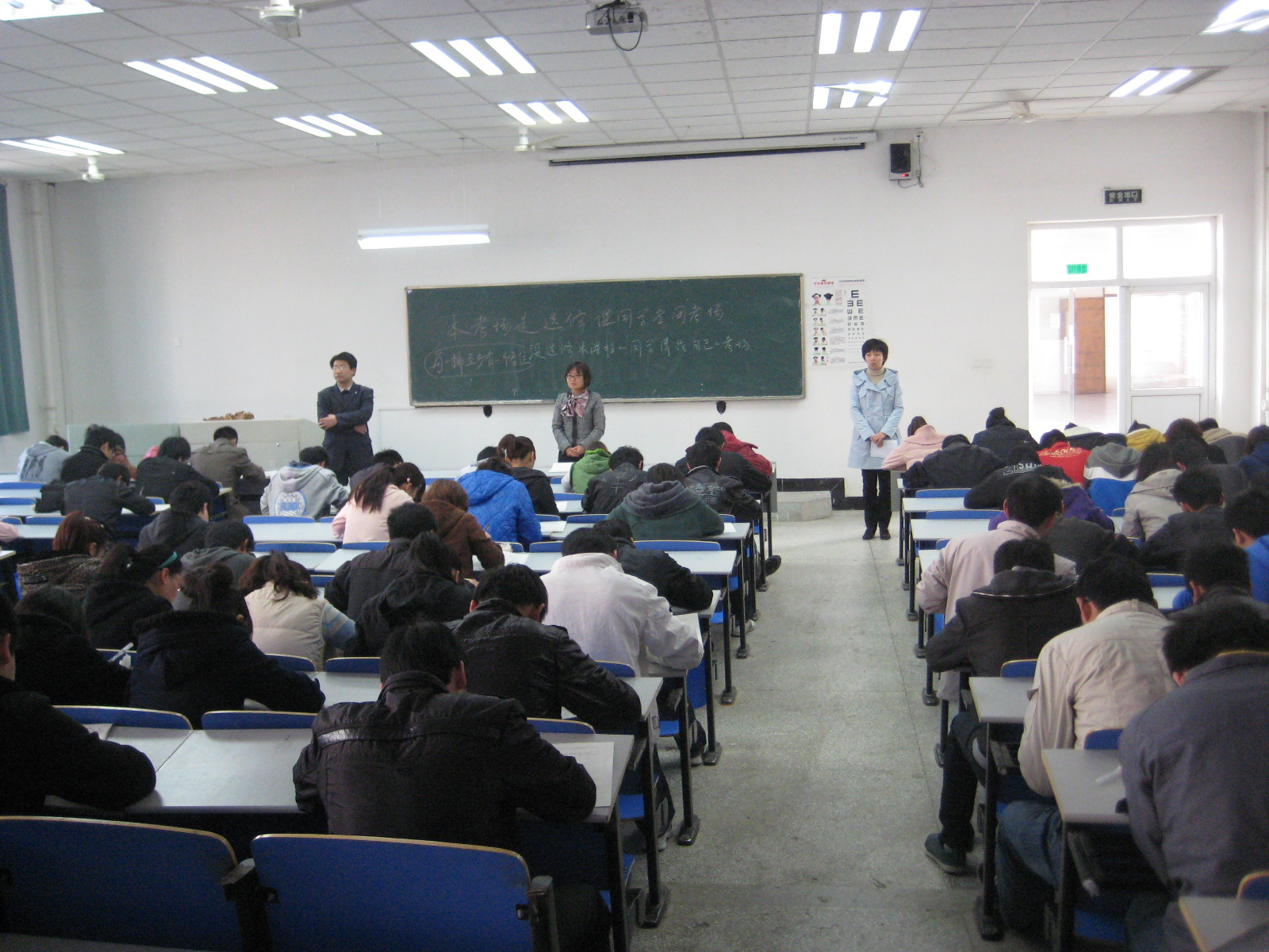 11月26日上午,由学院教务处主办、思政部协办的院第二届“创新思维测试与竞赛”活动在北阶教室如期进行。这个活动可以说是本届科技创新节中参与人数最多、组织难度最大的一项赛事。来自全院各系部的近八百多名同学踊跃报名参加了本次活动,思政部则抽调了十四名精干的专兼职教师组成测试队伍,从早上八点到晚上六点,监考、阅卷、成绩分析,一整天的紧张工作,使整个活动圆满完成。
