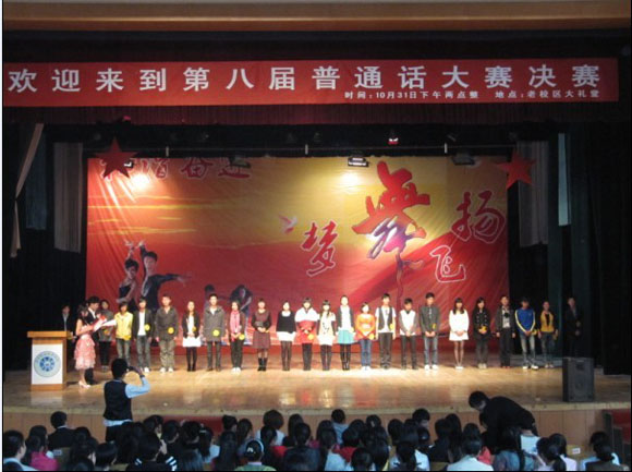 10月31日,在由院团委主办的学院第八届普通话大赛决赛中,来自基础部2010级园林(2)班的卞梦婷、李梦莹两位同学经过自我介绍、个性主持、才艺展示三个环节紧张的角逐,卞梦婷同学获得一等奖,李梦莹同学获得二等奖。