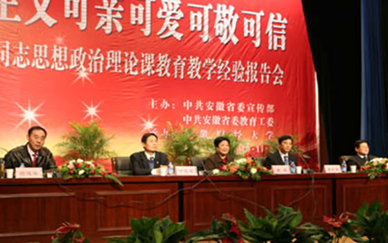 11月8日上午,由省委宣传部、省委教育工委主办的房玫同志思想政治理论课教育教学经验皖北地区报告会在安徽财经大学举行。省教育厅思政处处长杨建华主持了会议,来自安徽省皖北地区30余所高校的校领导、思政课教师和安徽财大师生代表800余人参加了报告会。新葡的京官网由江洁副院长带队,基础部主任、党总支书记王冬,思政课教研室主任李爱红老师参加了报告会。