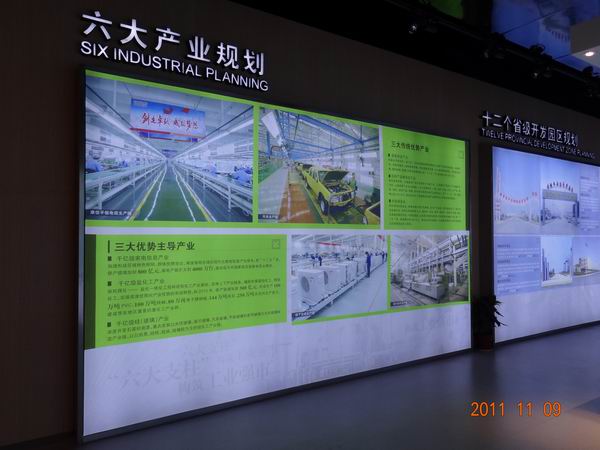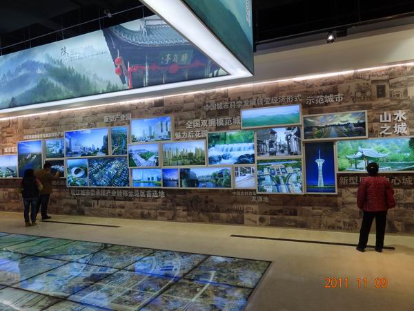 当然,现代化的城市规划蓝图展示才是规划馆的主题,一艘小艇带我们漫游未来的清流河,两岸的高楼和花园在身边移动,我们希望的心情在清流河温柔的碧波里荡漾。接着一个个产业园区的规划;城东、城北、城南新区的规划;琅琊新区、南谯新区的规划;科教园区的模型,南湖工程模型,大琅琊山生态公园的展示,让我们真切体会什么是“打好区位、资源、环境三张牌”,什么是“新型产业园、城市新家园和魅力后花园”,什么是“活力滁州、魅力滁州、和谐滁州”。