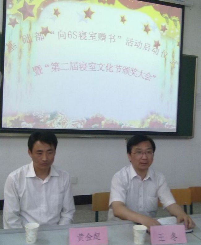 6月1日下午4点半,基础部送红书进6S寝室活动在2113教室正式启动。系党总支王冬书记率辅导员向所有6S寝室赠送了图书,并为此次赠书活动致辞,他向广大同学阐明了活动的重要意义,同时更对广大同学提出要求,他要求同学们妥善保管获赠图书,勉励同学们认真阅读,汲取书中的精华、增长智慧、提升品位,努力培养自身的文学素养和道德修养,促自身成长成才,以爱国主义和民族精神激励自己,为中华民族的伟大复兴读书。王书记还倡议学生们毕业前将获赠图书返还系部,使系部图书资源得以共享,也欢迎同学们将多余书籍赠予系部,为我系学风建设、寝室文化建设贡献自己的一份力量。
