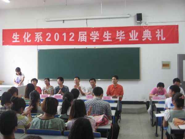 7月3日下午,新葡的京集团35222vip生化系2012届学生毕业典礼在2111教室隆重举行。生化系副主任梁建军、党总支副书记苏和堂、各教研室主任、辅导员、2012届全体毕业生及部分在校生代表参加了毕业典礼,毕业典礼由系团总支书记主持。