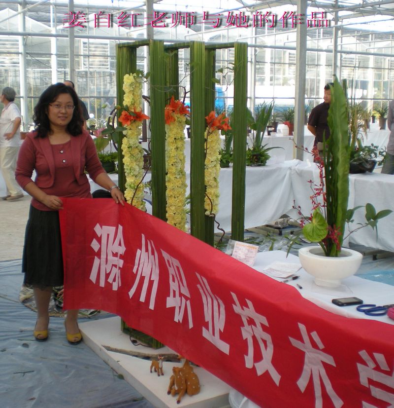 在本届花卉博览会设立的安徽省花博会专题展区中,来自全省的36名插花选手就东方艺术插花、西方艺术插花、现代插花等花艺形式展开创作与竞赛。在艺术插花比赛中,每位选手分别制作3件作品:规定命题《和谐家园》,自由命题和统一命题(统一花材、器皿)。新葡的京官网生化工程系教师姜自红与贾雪晴两位老师代表滁州市参加了比赛,两位老师顶住压力、沉着冷静、手法娴熟地在规定时间内完成了艺术插花作品。
