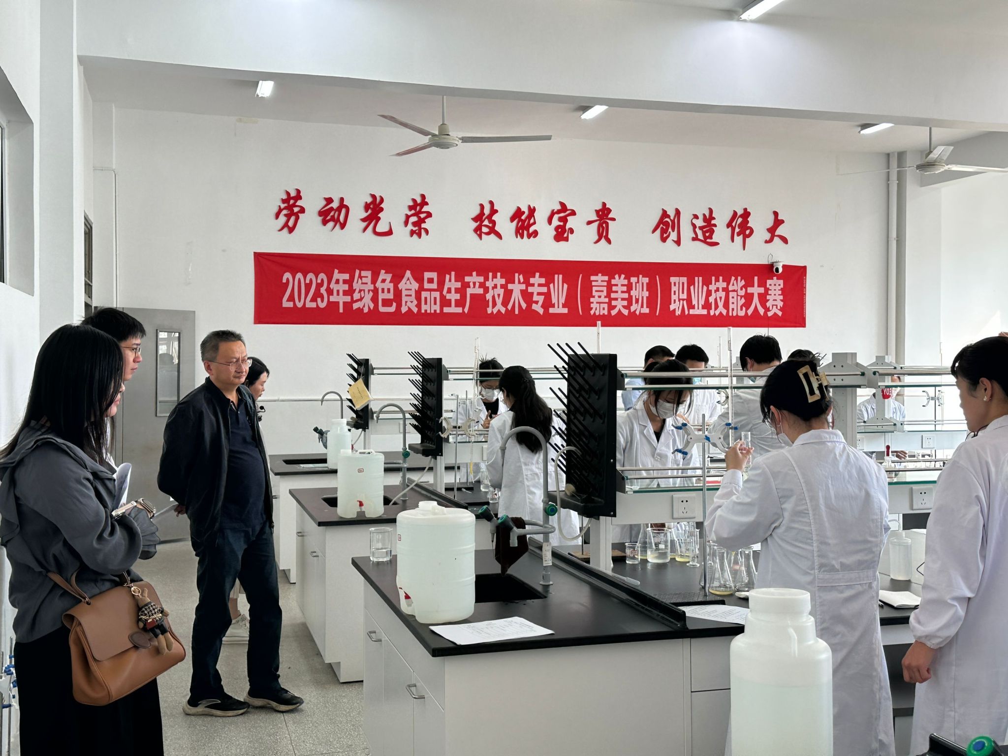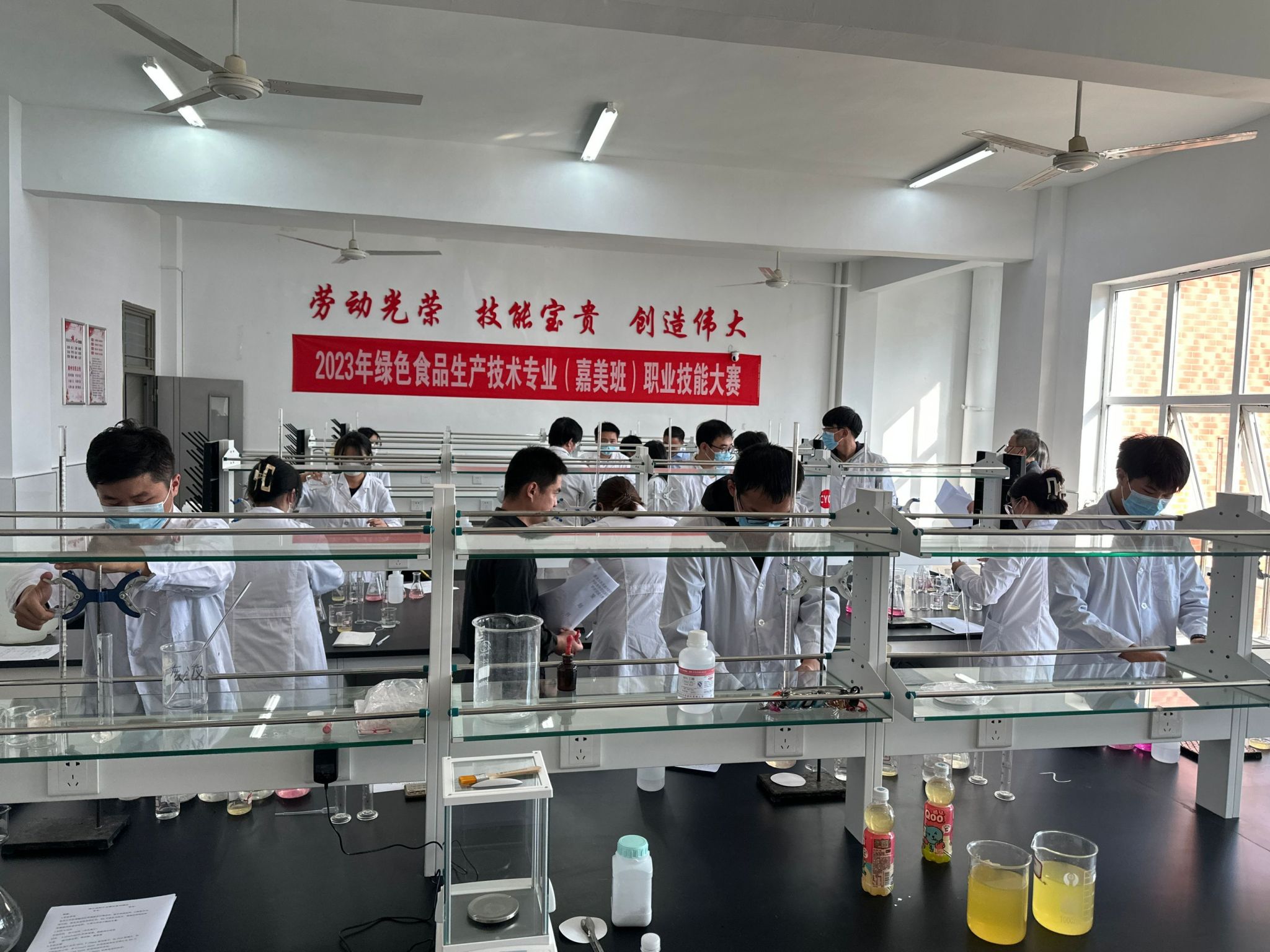 2023年10月18日下午,绿色食品生产技术(嘉美班)职业技能大赛在食品与环境工程学院2205实验室举行
