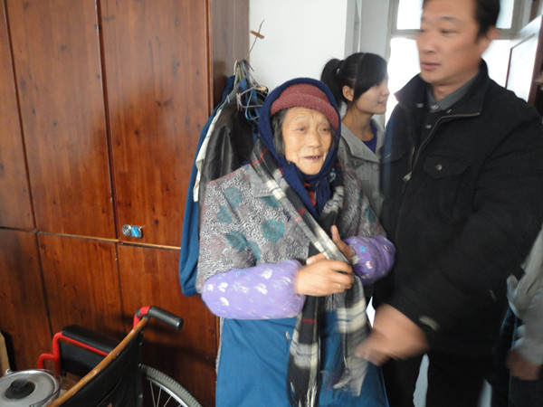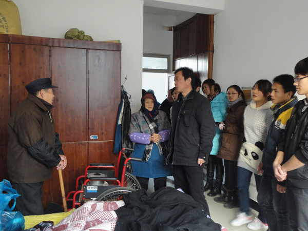 志愿者们到达敬老院恰逢晚饭时间,老人们正在做晚饭。吴老师介绍说,这里的老人都是自食其力,一日三餐自己动手,大家互相帮助、互相照顾,自己种菜、自己养猪,不仅能自己吃到肉,多余的还能卖出去,让自己的生活过的更好。志愿者们将带来围巾、棉袜等送给一些有需要的老人,他们显得非常开心。这是今年入冬以后我系青年志愿者关爱社会弱势群体的第一次行动,希望这些保暖用品能让老人们拥有一个温暖的冬天。