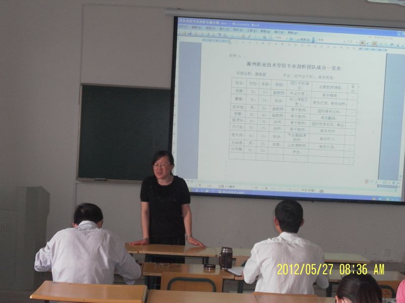 专业建设是高等职业院校人才培养工作的重要基础工程,专业剖析是落实“以评促建”的重要途径。为适应学院深化教学改革的新形势,推动迎评促建工作深入开展。5月27日上午,生化系、基础部专业剖析比赛在2305教室如期举行。江洁副院长对此次比赛提出了要求,教务处张延义处长亲临现场指导。