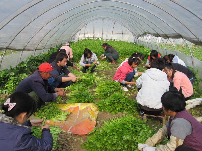 11级园艺技术专业的学生于第11周开展了《蔬菜栽培技术》的实习。实习期间,学生在老师的带领下来到滁州市石马蔬菜基地参观学习。该基地位于滁州市北部,西涧街道石马村,占地300多亩,主要用钢管塑料大棚生产西红柿、辣椒、香菜、莴笋、芹菜、西葫芦、萝卜、小白菜等蔬菜。在基地,学生遇到了菜农老王,老王热情的向同学们的介绍了该基地占地面积、大棚的造价、菜农的收入等情况。介绍以后,学生们有针对性的问了一些问题,“棚膜能用几年?”、“棚内一年四季蔬菜是怎样安排的?”、“冬季香菜如何种植能赶上春节的高价?”、“大棚内有专门的灌溉设施吗?”…一个又一个的问题,使学生们不但巩固了理论知识,而且还学到了很多书本上没有的知识。最后,学生们帮助老王收获芹菜等,干得热火朝天。很多学生表示:下到菜地里,自己也是个合格的菜农,等下次有机会还会来参观学习。