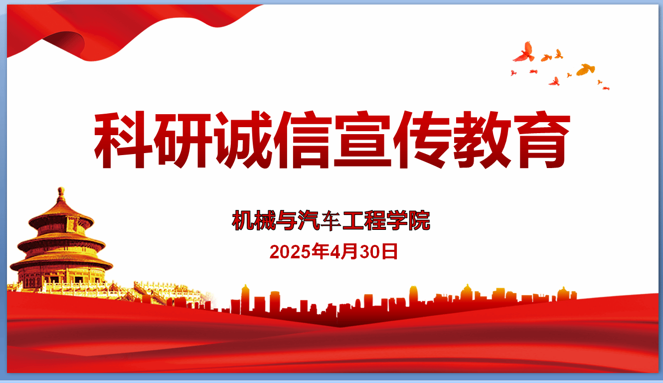 为进一步加强科研诚信建设、强化学术不端问题治理,构建健康的学术生态,培育创新文化,4月30日下午,机械与汽车工程学院开展了“科研诚信”宣传教育活动。