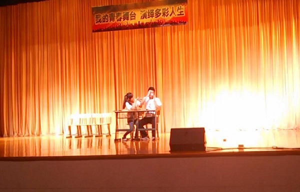 汽车系同学通过先前的准备,第三个上场,表演的剧目为《同桌的你》,在悠扬的《同桌的你》的旋律中,一对同桌来到舞台,一段和谐,美妙,经典的剧目就此拉开序幕,从最初同桌之间相互起了矛盾,到后来男生帮助女生,当男生遭别人欺负时,女生用其温柔的言行去安慰他,场面是多么和谐。然而,光阴似箭,转眼又到了毕业季,在一首略带忧伤的《栀子花》的曲目中,男生将自己心爱的口琴送给女孩,女孩则将自己的笔记本送给男孩,至此,表演剧目取得圆满成功。结束后,会场内掌声雷动。尽管还是那些事,那些表演手法,但是只要把青春展现在我们面前,戳中自己的点,这就是自己的记忆,永恒的记忆,让大家仿佛又回到了从前,想起了曾经的自己,曾经的同桌。经过耐心的等待,汽车系的剧目最终获得8.3的高分。