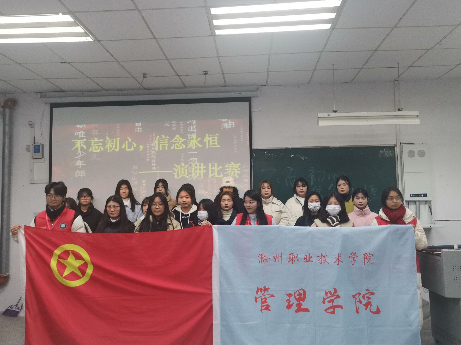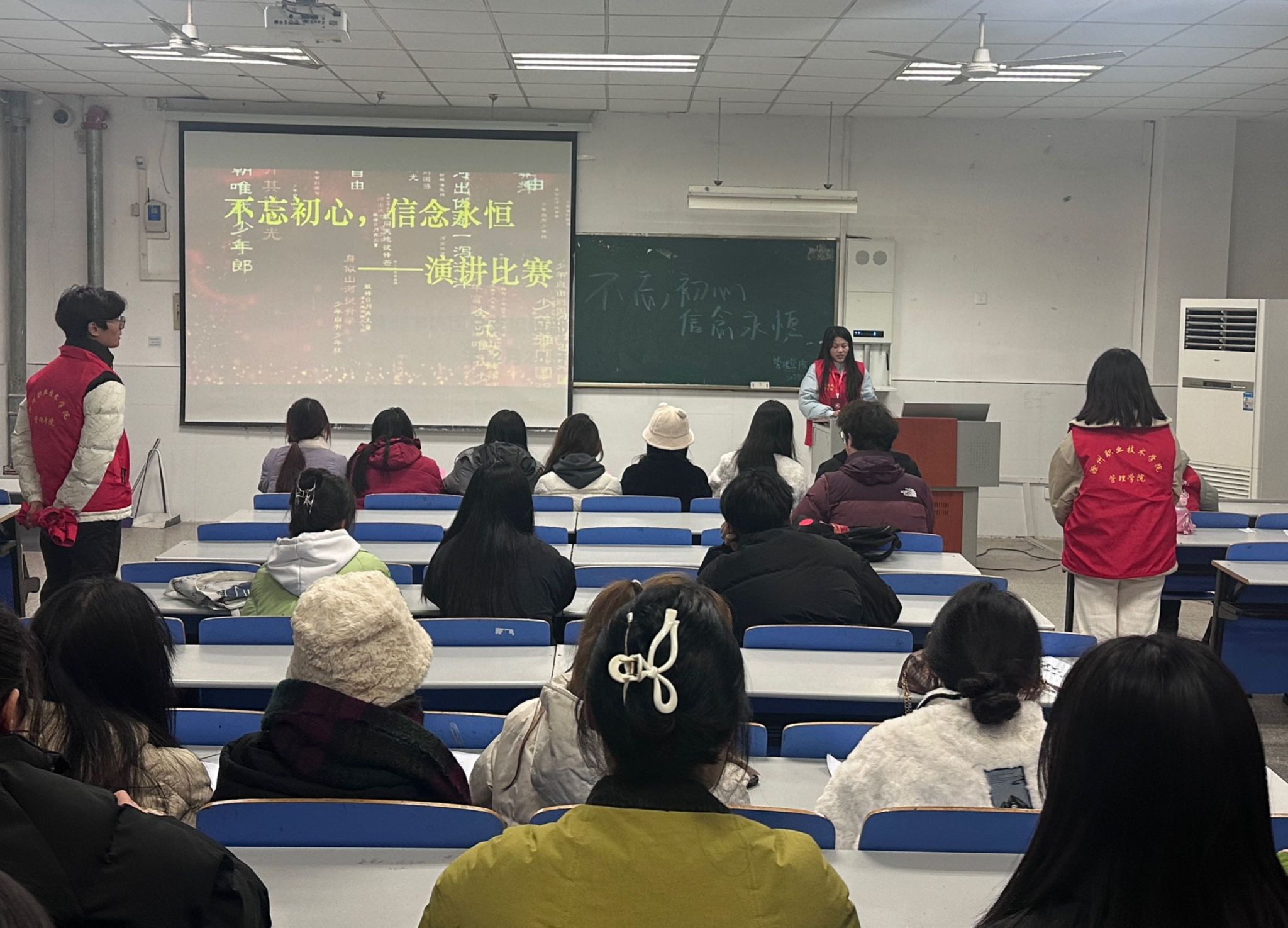 管理学院团总支于2023年12月28日在1101教室开展“不忘初心,信念永恒”演讲比赛,本次比赛由团总支组织部负责,管理学院学生积极参加。
