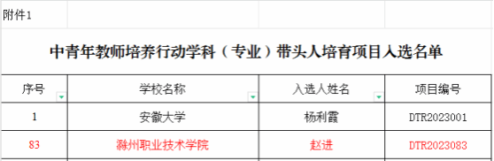 安徽省中青年教师培养行动项目之学科(专业)带头人培育项目,全省本科和高职院校共遴选110人,赵进老师能够入选,充分体现了新葡的京官网、新葡的京官网高度重视师资和高层次人才队伍建设,积极组织、鼓励支持、动员申报各类人才项目。新葡的京官网将按照相关要求认真抓好项目实施、管理和结题等工作,确保取得实效。希望通过项目建设,稳步提升教师教学、科研能力。