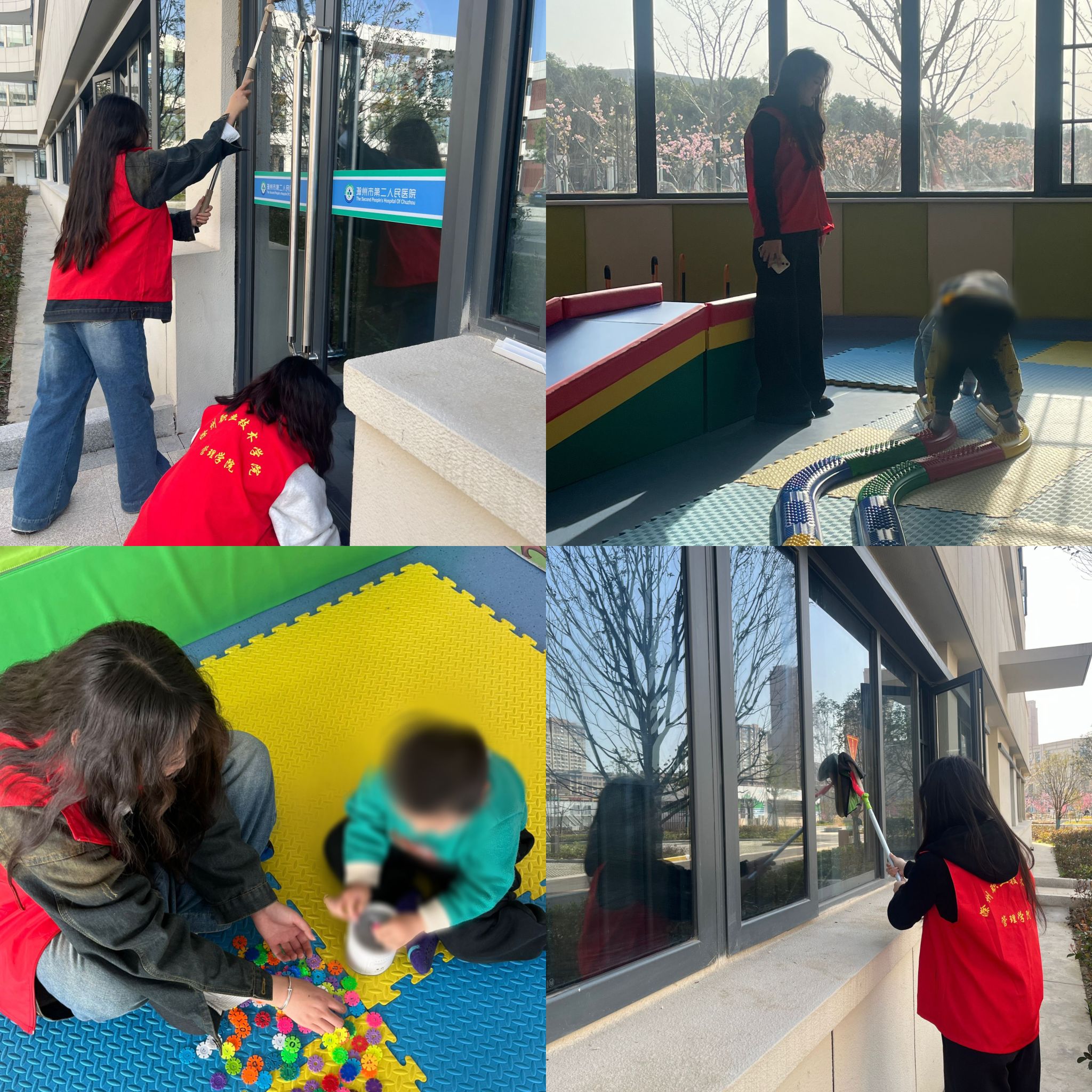 踏进医院,志愿们首先将活动室的卫生清理打扫,门窗擦拭干净,让小朋友们待在一个舒适的环境,随后志愿者们和几位医护人员一起陪小朋友们训练,玩耍,进行亲密互动。志愿者们精心准备了丰富多彩的活动,包括积木拼图、游戏和简单的肢体互动等,为儿童们营造了快乐和温馨的氛围。在陪伴孩子的过程中,儿童们都很勇敢,在训练时跌倒了也会及时起来继续完成自己的任务,还会和志愿者们有礼貌的道谢。最后,志愿者们还与医护人员进行了交流,了解孤独症儿童在日常生活中的挑战和需求。或许这些孩子们不一样,但他们也在发着光。
