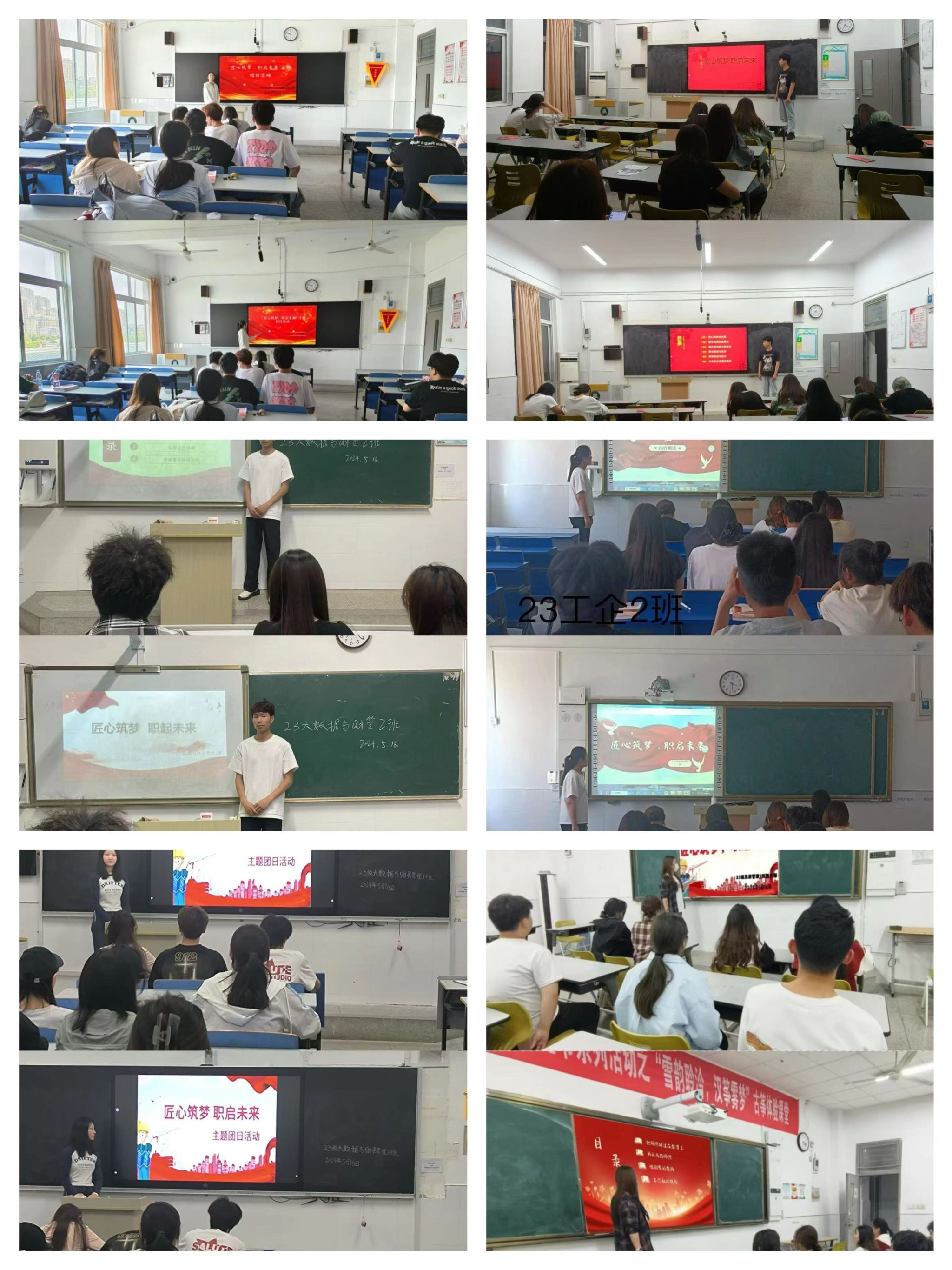活动中,首先以习近平总书记关于职业教育的重要讲话精神为主题,结合历年来中国青年五四奖章、全国“两红两优”等先进典型的榜样故事,进行团课讲解。学生们从一个个鲜活的故事中感悟工匠精神,汲取榜样力量,深刻认识到“职业教育前途广阔,大有可为”的重大意义。同时通过展示职业教育服务国家战略需求和区域经济社会发展成果,鼓励同学们要紧跟时代步伐,不断提升自己的专业技能和创新能力,以适应国家经济社会发展的需要,创造伟大的时代风尚,争做高素质技能人才。
