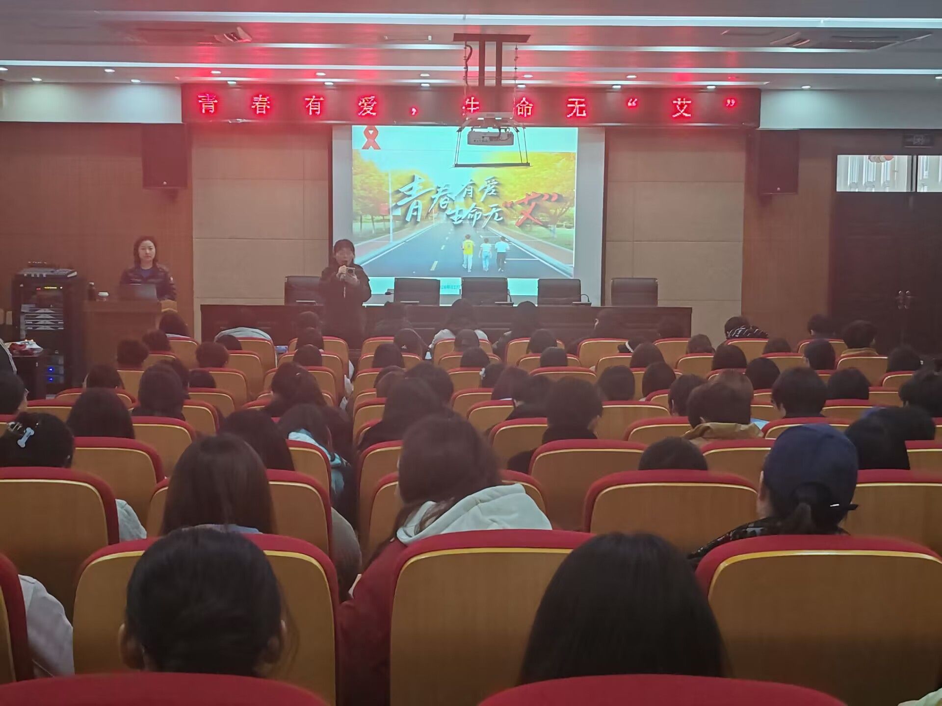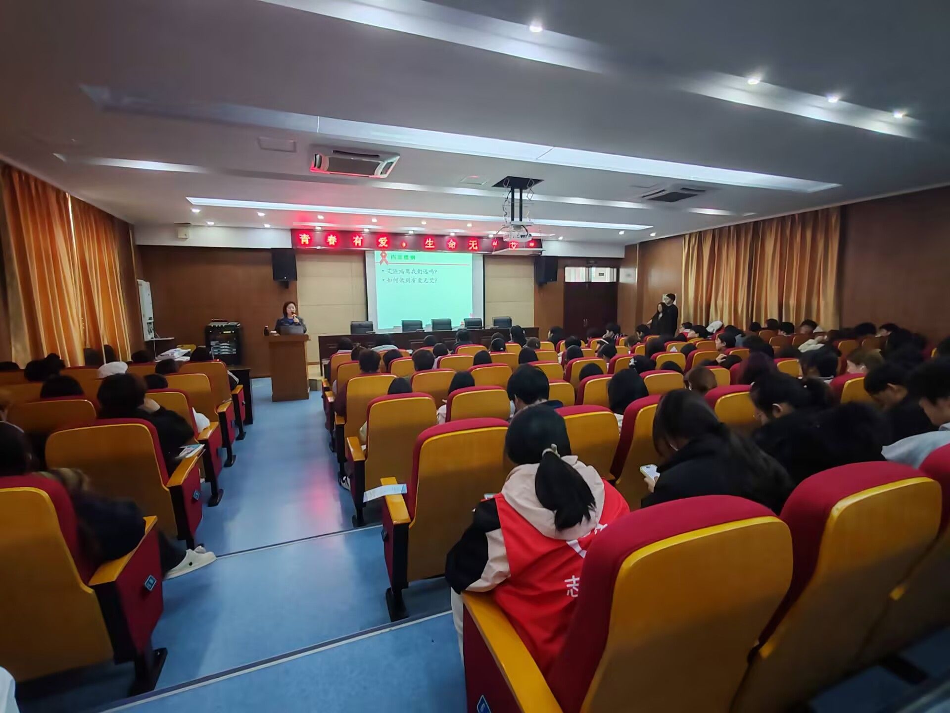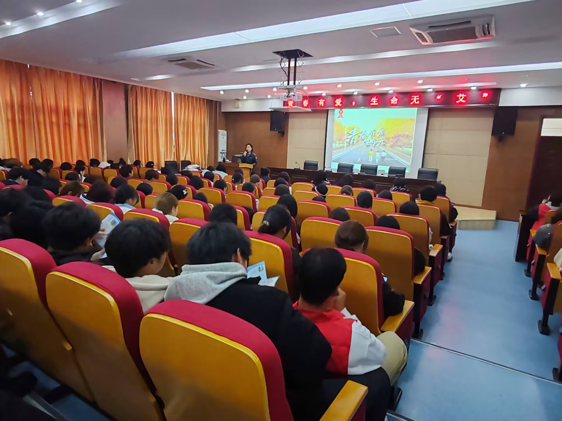 讲座中,黄卓君科长通过图文并茂的课件、生动鲜活的案例,向同学们讲解了艾滋病的传播途径、预防方法以及艾滋病对个人、家庭和社会的危害。现场学生专注聆听,对艾滋病相关知识有了初步的认识。