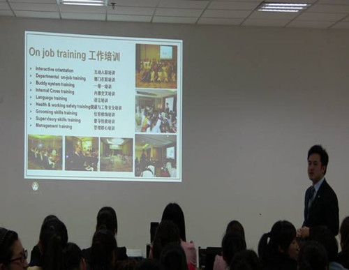 接下来,上海绿地豪生全套房酒店、南京开元酒店、南京苏体酒店、南京粤鸿和饮食管理有限公司、上海华纳酒店、上海国丰酒店、上海巴黎春天新世界酒店等七家酒店依次介绍了酒店的概况、人才培养理念、员工职业发展和实习待遇。这些酒店为学生提供了包括前厅、餐饮、销售、行政等等众多专业对口岗位。