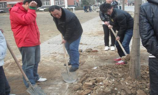 在我国第33个植树节到来之际,经贸系于3月11日下午在系党总支李书记的带领下,由各位辅导员与部分老师教师及同学门一道,共同进行了一场以“绿化环境,美化校园”为主题的植树活动。