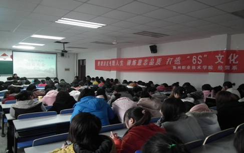 为积极响应学院号召,贯彻落实学院2012年学生教育工作要点,提升6S文化建设质量、认真开展读书成长年活动,经贸系于2012年3月21日1102教室召开了两场分别针对6S文化建设年和“书香伴我行”读书成长年的动员大会。动员大会由经贸系党总支书记李怀成同志主讲,经贸系各班班长、团支书、学习委员、生活委员、寝室长、入党考察对象和部分入党积极分子等学生代表参加了报告会。
