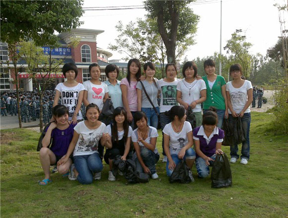下午四点,太阳依旧有点炙热,可这些丝毫不影响09会计6班同学们的积极性。四点十分,班长点完名之后,便把环保垃圾袋发与同学们手中。同学们两人一组,一人捡垃圾一人提袋子。待分好区域之后,大家便忙碌起来。