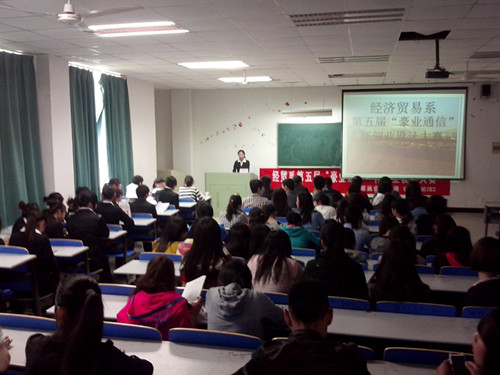 2013年4月17日下午,由经贸系团总支,学生会举办的创业大赛在经贸系1102教室成功举办。经贸系辅导员陈光锐、张浩,何堃以及上届比赛获奖选手担任了本场比赛的评委。