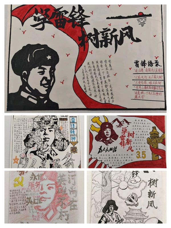本次活动以摄影、微视频、手抄报、剪纸等多种艺术形式进行创作与展示。其中,手抄报活动在众多形式中脱颖而出,吸引了众多学生的积极参与和关注。它以传统而独特的方式,生动地记录和分享了雷锋的事迹与感悟。摄影活动同样吸引了众多学生的积极参与,摄影作品通过捕捉日常生活中的感人瞬间,生动诠释了雷锋精神的时代内涵。一幅幅作品,无论是摄影还是手抄报,都展现了学生们对雷锋精神的深刻理解与感悟,传递出他们对社会的关爱与责任感。