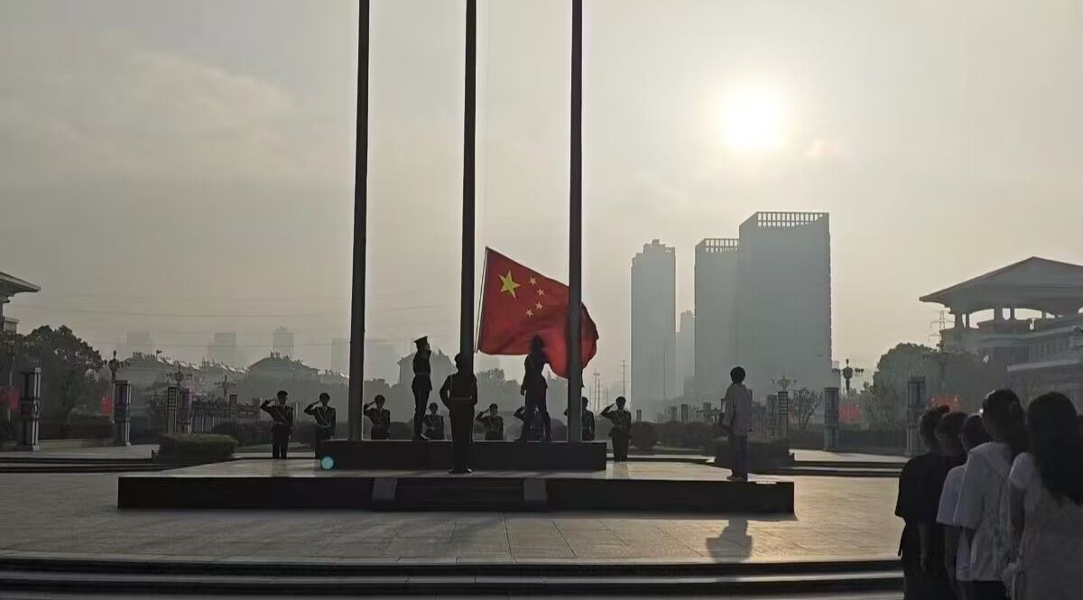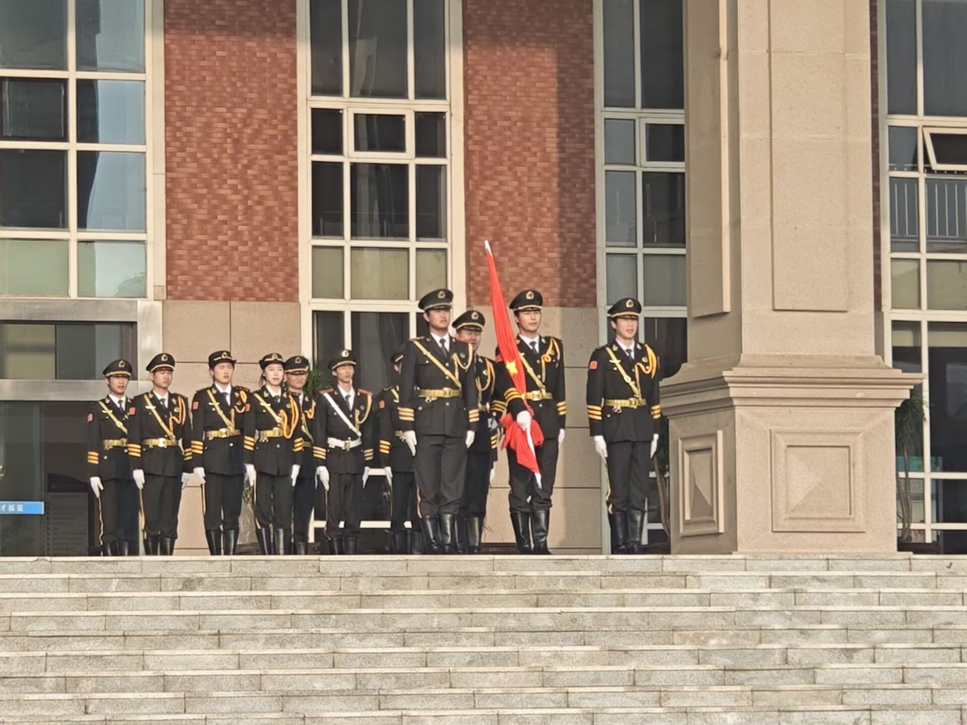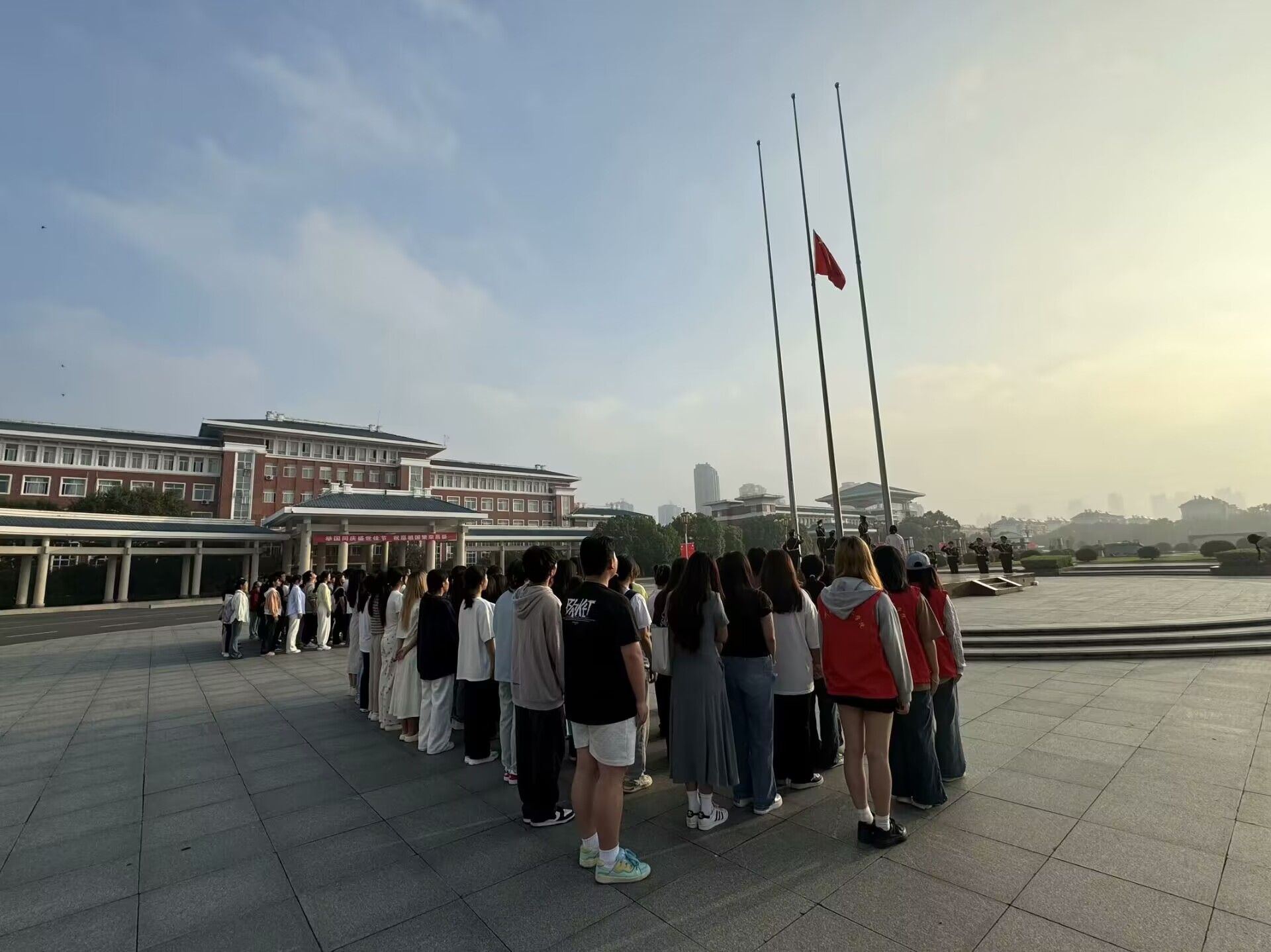 为庆祝中华人民共和国成立75周年,加强学生爱国主义教育,激发新时代青年大学生爱党爱国情怀,商学院学生会于2024年9月29日上午7点在综合楼前举行升旗仪式。