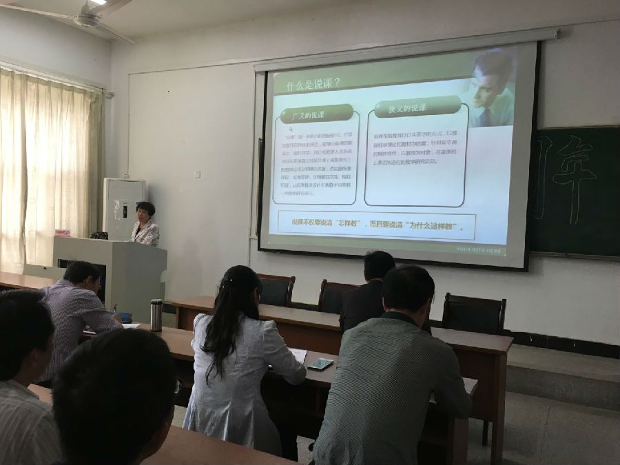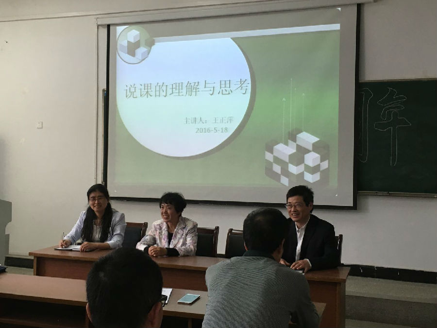 王正萍主任作了作题为《说课的理解与思考》公开课,对“什么是说课,为什么说课”作了详细的阐述与解释,从“对说课理解上”存在的典型误区进行深入地分析,对说课的基本内容(说教材、说教学法、说学法、说教学程序),通过举例进行详尽剖析,并总结出说课的基本原则供大家参考,最后从“说‘准’教材、说‘明’教法、说‘会’学法、说‘清’教学意图、说‘清’练习层次”几点给出说课的技巧与方法。
