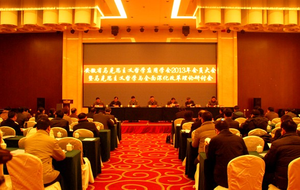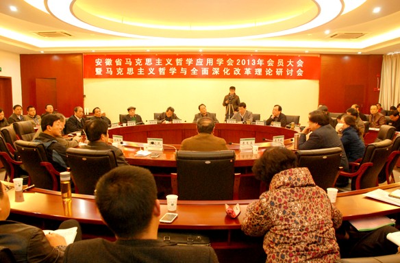 省社科联副主席洪永平洪永平、滁州学院党委书记庆承松、中共安徽省委政研室原主任谢道文在会上先后致辞。会议听取了省马哲应用学会会长、合肥工业大学出版社总编钟玉海教授所作工作报告,通过了学会选举章程和新一届理事会常务理事、理事成员名单,选举产生了学会会长、副会长、秘书长。安徽工业大学党委书记刘新跃当选为学会新一届会长。
