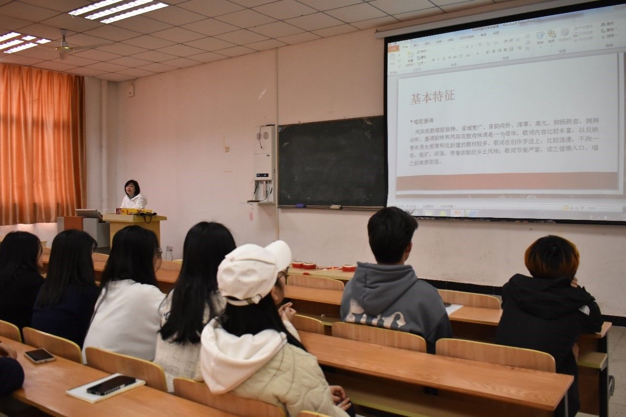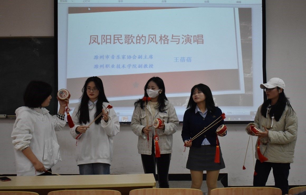 为深入学习贯彻习近平新时代中国特色社会主义思想和党的二十大精神,弘扬中华优秀传统文化,唱响安徽民歌。3月8日下午, 基础教学部在南阶103教室举办了“凤阳民歌风格与演唱”学术讲座,滁州市音乐家协会副主席、新葡的京官网人文素养教研室副教授王蓓蓓主讲,学校合唱团、广播站和部分音乐爱好者聆听讲座。