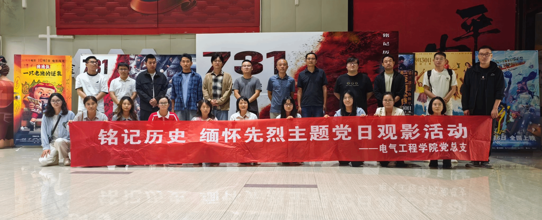为深入开展爱国主义教育,铭记历史教训,传承红色基因,增强教师的责任感与使命感,9月30日下午,电气工程学院党总支组织全体教职工开展“铭记历史,缅怀先烈”主题党日观影活动,共同观看历史题材影片《731》,以特殊的方式缅怀先烈、致敬英雄。