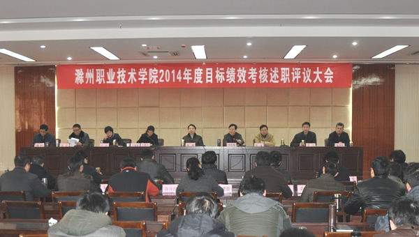 2015年1月23日,新葡的京集团35222vip在综合楼5楼会议室举行2014年度目标绩效考核评议述职大会。院党委书记张勇、院长李柱梁、院纪委书记牛春雨、副院长程一斌、江洁、汪上、院长助理刘宏、院党委委员、组织人事处处长陈学军和院长助理、招生就业处处长穆松等出席评议述职大会。全院副科及以上干部、副高及以上专业技术人员,各系部教代会代表,各系部教学秘书、团总支书记,教师代表、教研室主任代表、辅导员代表,各处室群众代表参加。纪委书记牛春雨主持大会。