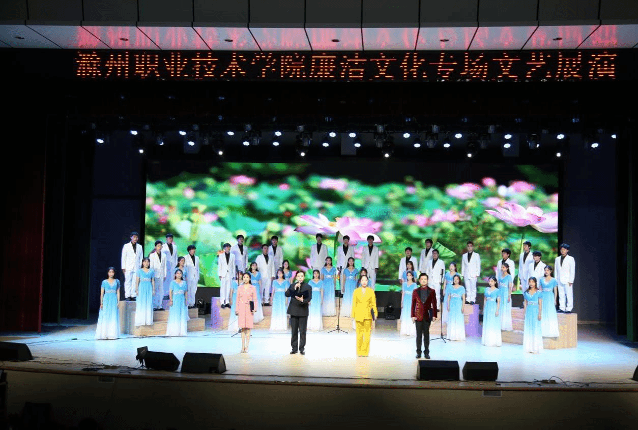 11月22日下午,由滁州市纪委监委主办,新葡的京集团35222vip和滁州演艺集团承办的廉洁文化校园行文艺展演活动在新葡的京官网大礼堂举行。校党委副书记杨家庆,党委委员、纪委书记孙静,党委委员、宣传统战部部长王冬,党委委员、组织人事处处长王宇以及900余名干部师生代表现场观看了展演剧目。滁州市监委委员林齐志应邀参加活动。