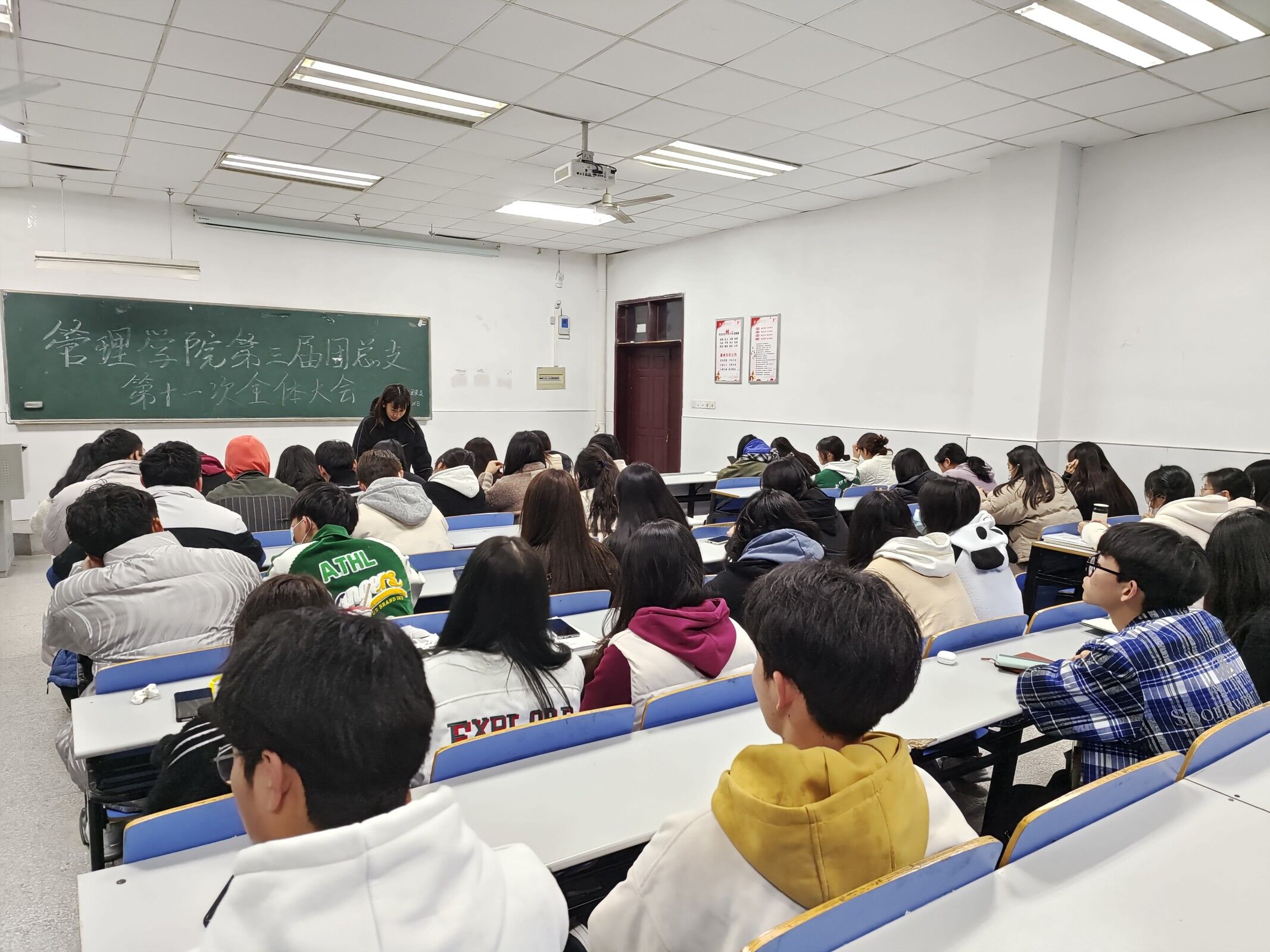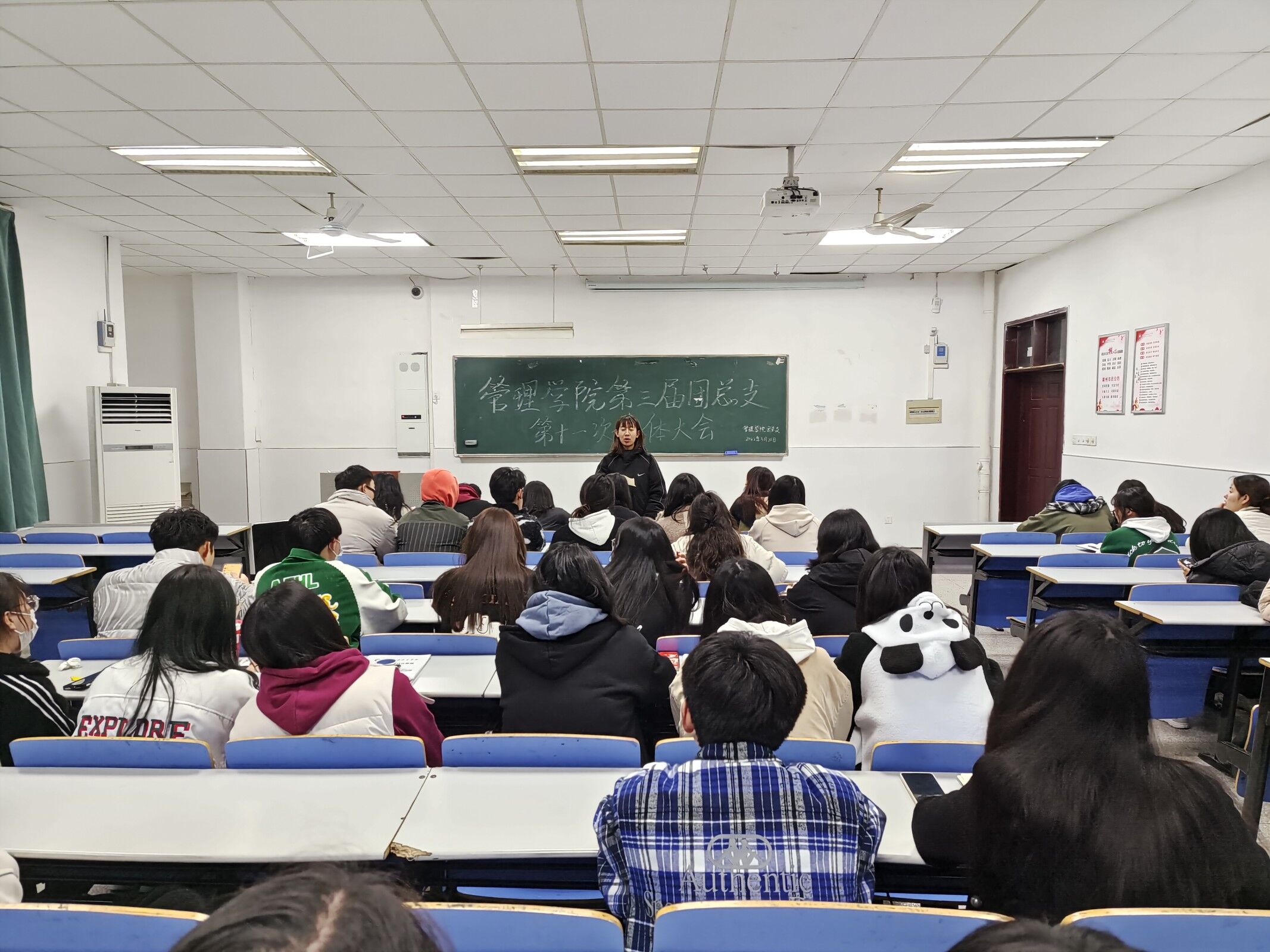 管理学院团总支第三届第十一次全体大会,于3月20日晚6点30分在1102教室举行,团总支副书记罗颖主持会议。