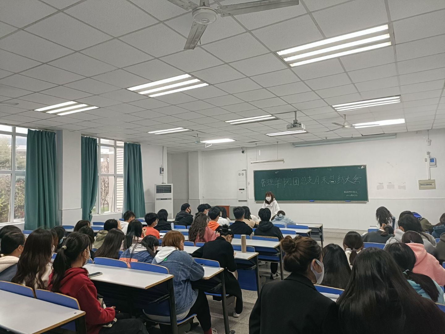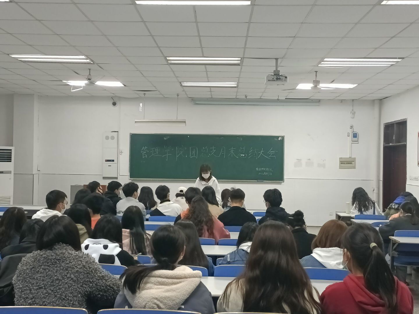 管理学院团总支于2022年3月27日晚18点在致真楼1102教室开展团总支三月月末总结大会。本次会议由团总支副书记罗颖主持,团总支全体成员参加。