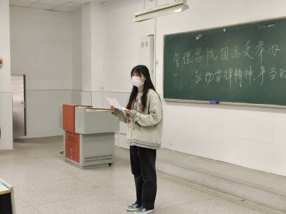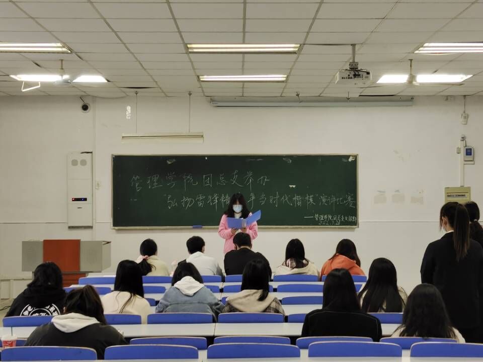 管理学院团总支文娱部和外联部于2022年3月26日在1102教室共同举办了“弘扬雷锋精神,争当时代楷模”演讲比赛,由外联部大一干事张月主持活动。