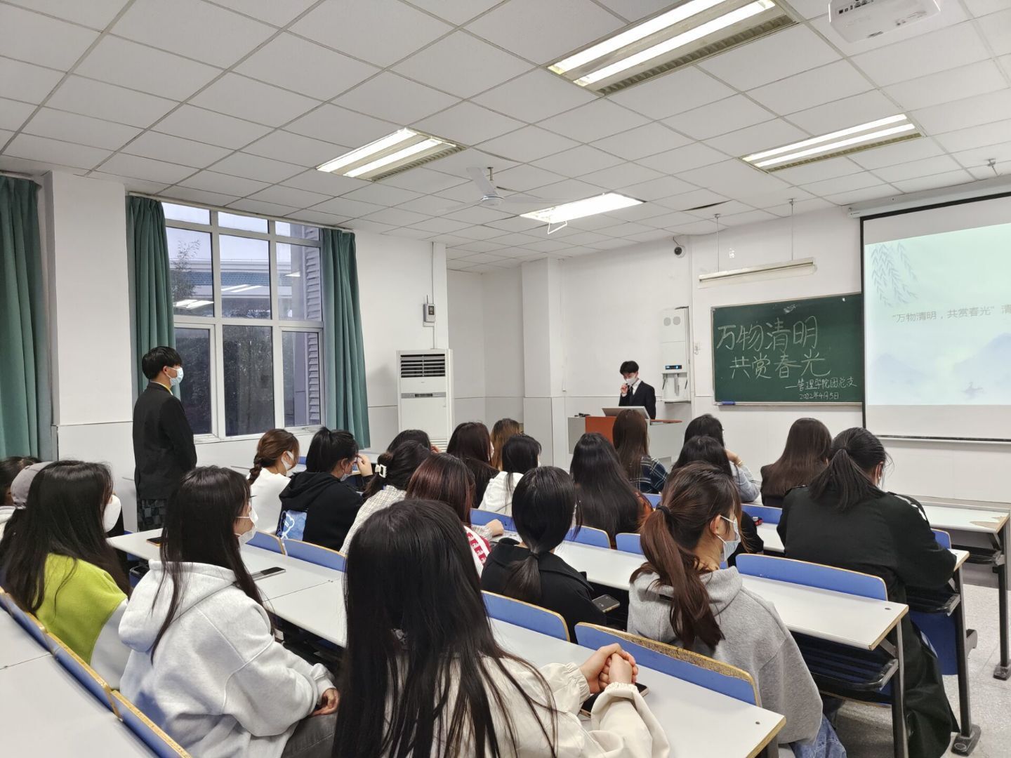 为了缅怀和悼念革命烈士,弘扬民族精神,管理学院团总支文娱部于2022年4月5日晚18:30分在1102教室举办"万物清明,共赏春光"座谈会。座谈会由组织部马乾隆主持,21级同学参加。