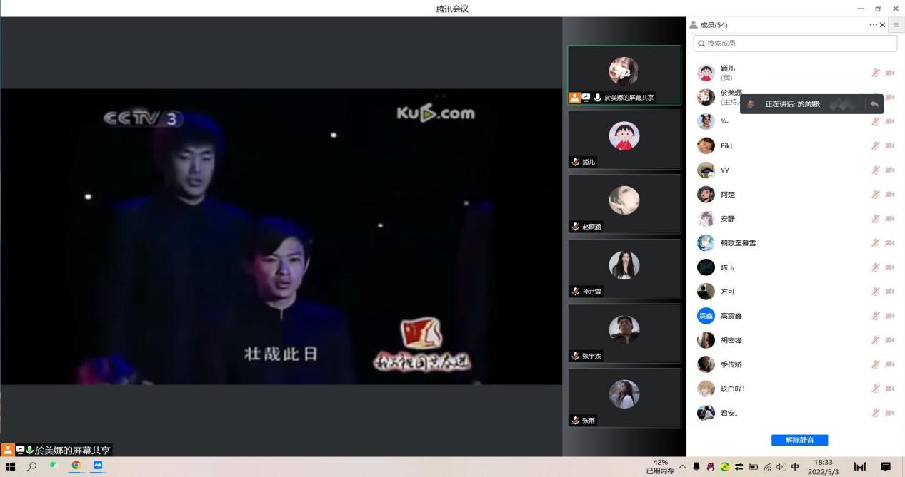 今年是中国共产主义青年团成立100周年,为隆重纪念五四运动,弘扬“爱国、进步、民主、科学”的五四精神,传承红色基因,5月3日,管理学院开展“承五四精神,扬青春风采”主题教育活动,本次活动以线上的形式开展,管理学院团总支21级干事参与,组织部於美娜主持。
