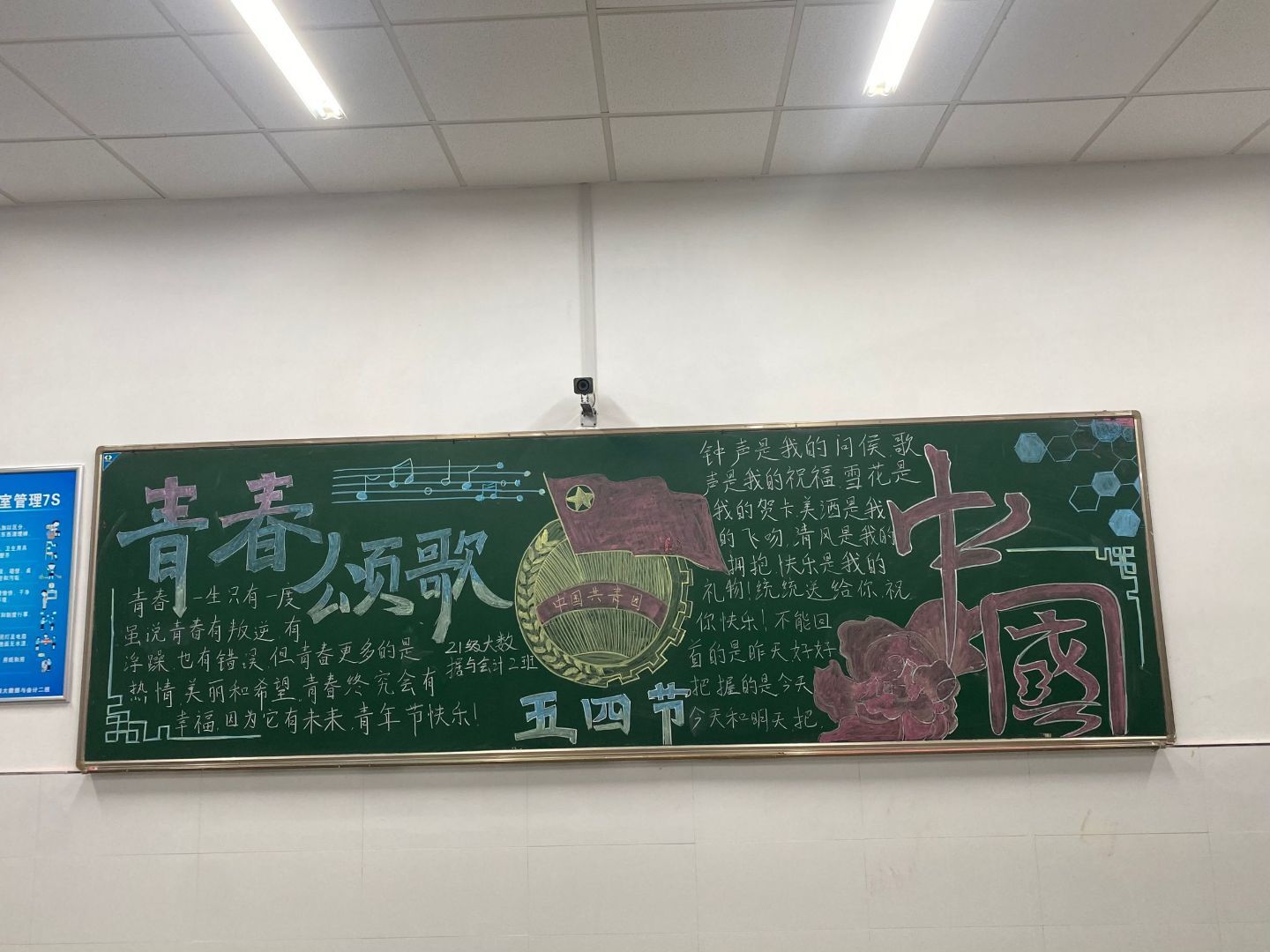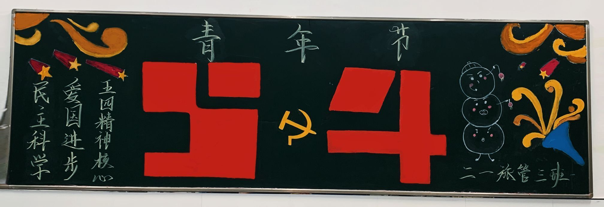 为弘扬“爱国、进步、民主、科学”的“五四”精神,展现广大团员青年向善向上、奉献社会的青春风采,管理学院团总支在2022年5月4日开展“弘扬五四主旋律,传递青春正能量”黑板报评比活动,此次活动21级各班同学参与。
