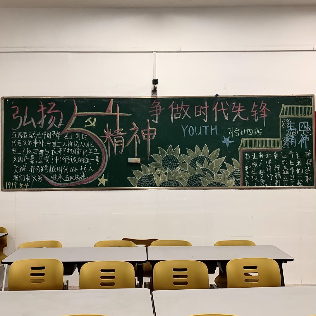 活动过程中,各班级积极参与,精心组织,认真查找相关资料,在黑板上诠释着新时代青年对“五四”精神的理解和传承。丰富的板报内容传达着青年学生传承“五四精神”和争做有理想、有本领、有担当的新时代青年的责任意识。