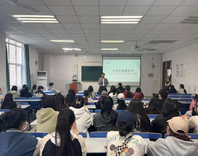 讲座首先由管理学院党总支书记耿学刚做动员讲话,帮助参会同学充分认识到开展创业宣讲活动的重要意义,希望同学们珍惜机会,抓住在校的最后一段美好时光。然后,田陈陈做创业解读,从创业、就业、为人三个层面进行分享。最后,现场学生进行互动提问,比如“创业启动资金要多少”、“独立创业还是合伙人制度更好”等。