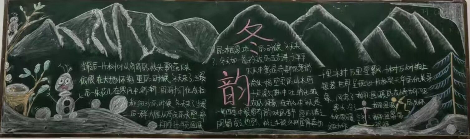本次主题黑板报比赛,各支部同学构思多样,穿插了大量的“雪”元素,如雪人、雪枝、雪山、雪松等,营造了浓郁的校园文化气氛,表达同学们对传统文化的认识。
