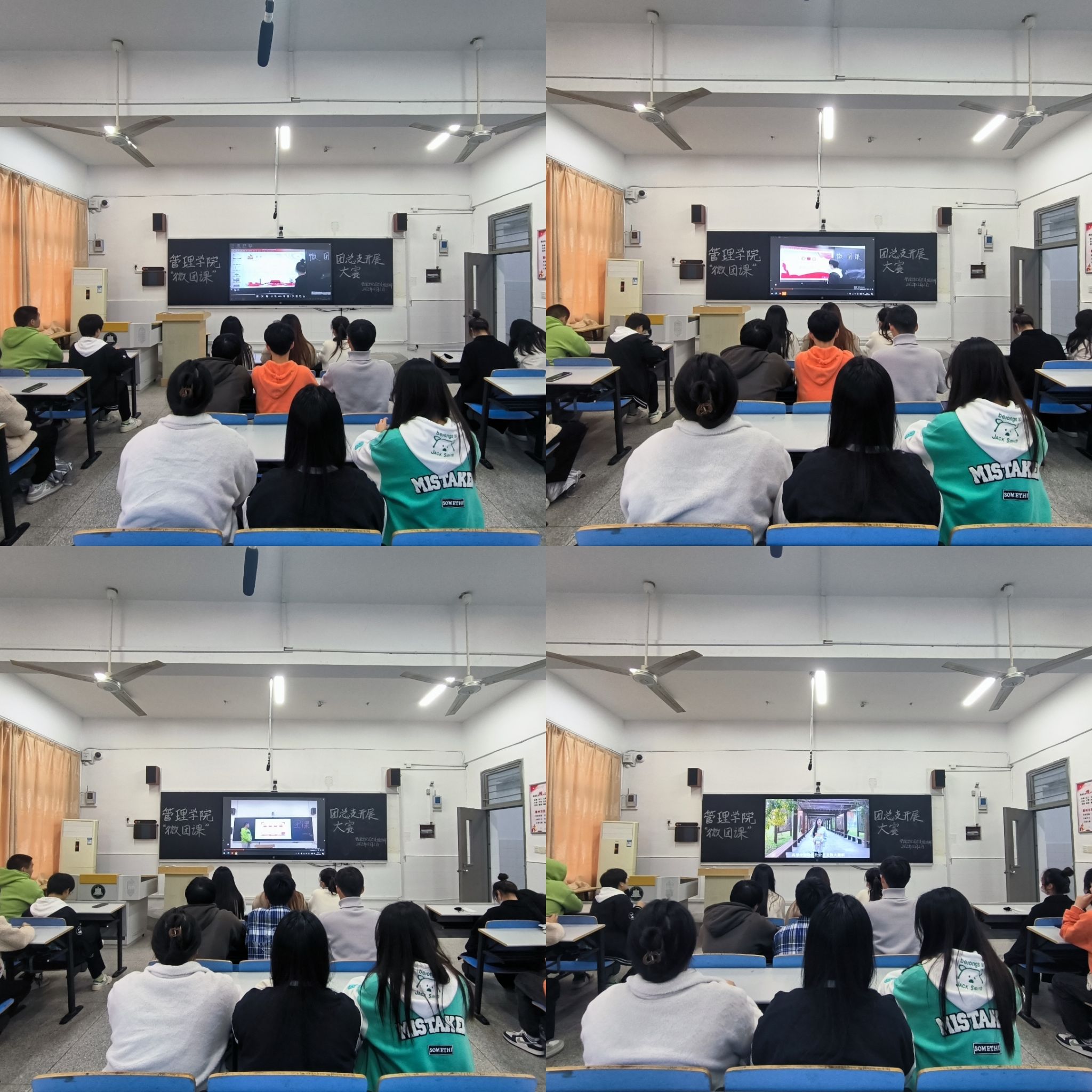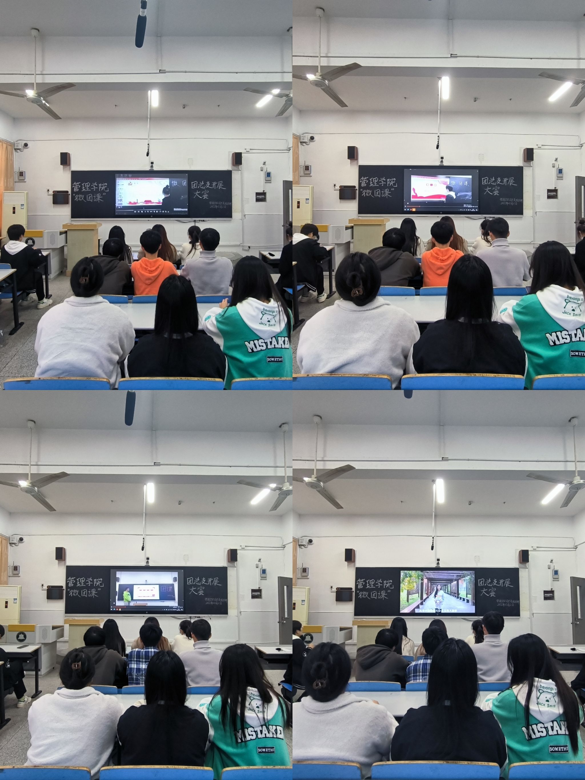 各团支书的微团课围绕党的二十大精神展开,向团员青年展开了全面宣讲,他们通过PPT和视频讲解的方式为同学们做深入的阐释。各部门部长作为评委为所有微团课进行评比打分。