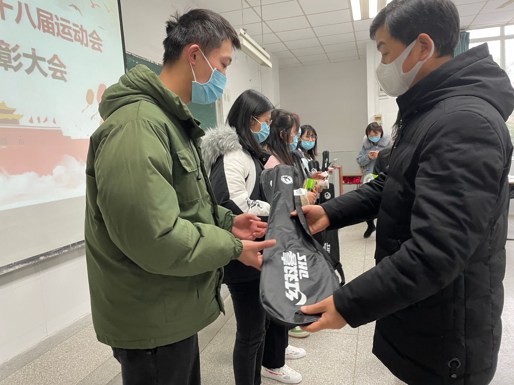 表彰会第一项,由袁一老师进行获奖名单宣读,张雪等同学获得表彰;第二项,管理学院学生会主席对工作人员在本届运动会的支持与帮助表达真挚的感谢,也对存在的问题进行反思并总结经验;第三项,耿书记为获奖运动会颁发奖状和礼品,同时对运动员比赛时的认真与拼搏给予了高度的评价,更是对他们的付出表示激励与肯定,体现出当代大学生勇于担当的责任与使命。