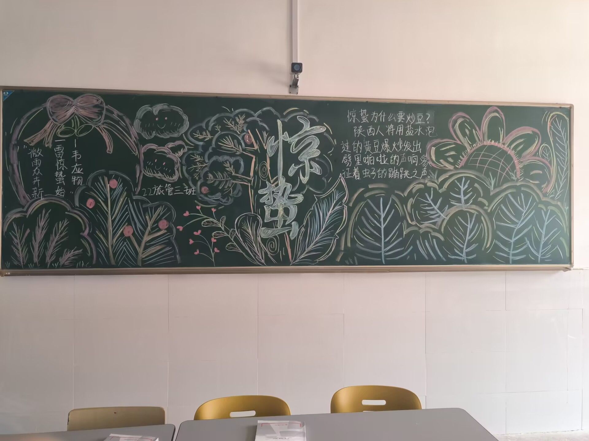 为了加强校园文化建设,丰富师生文化内涵,增进大家对传统文化的了解,2023年3月10日,管理学院举办“微雨众卉新,一雷惊蛰始”黑板报活动。