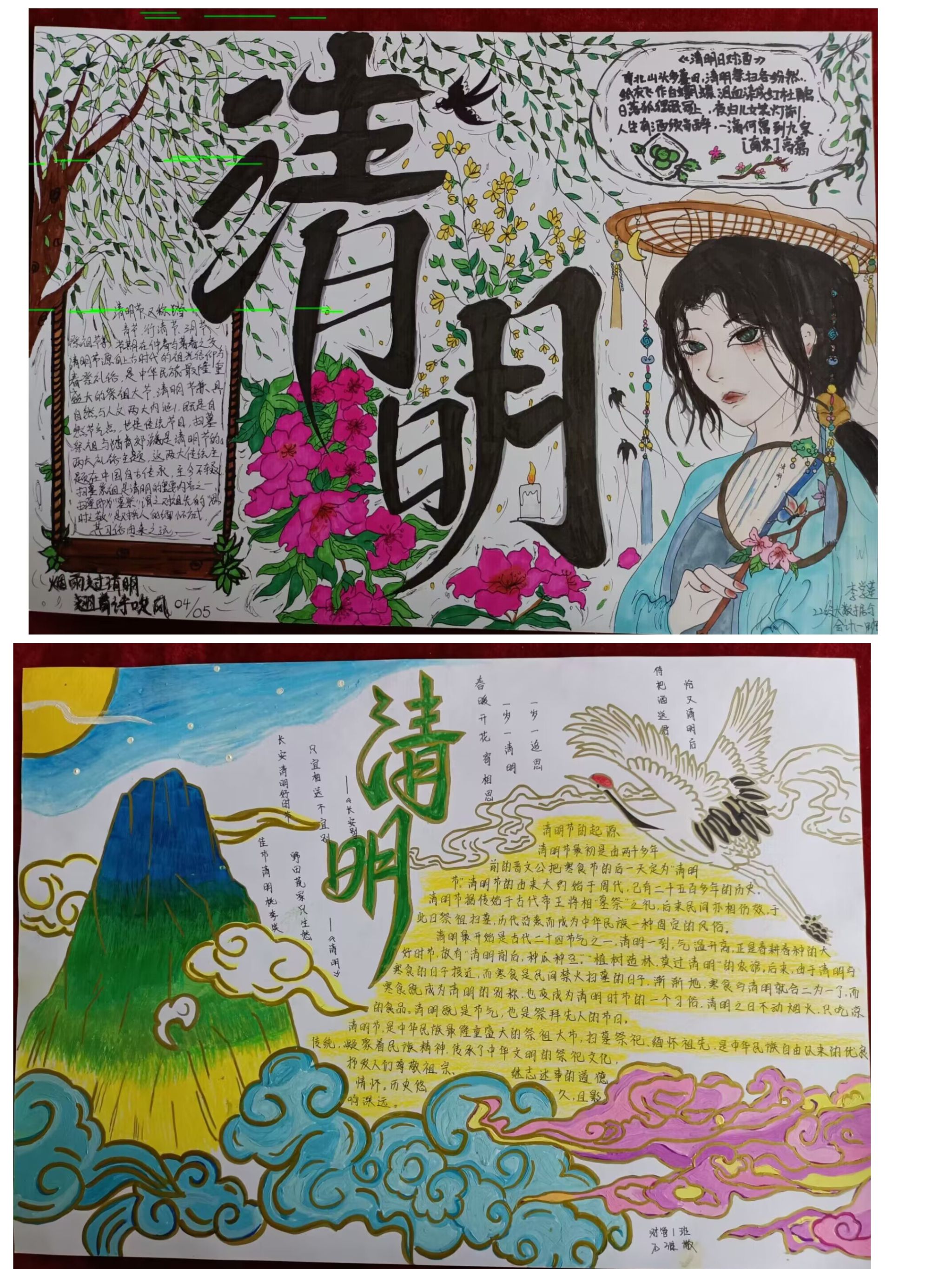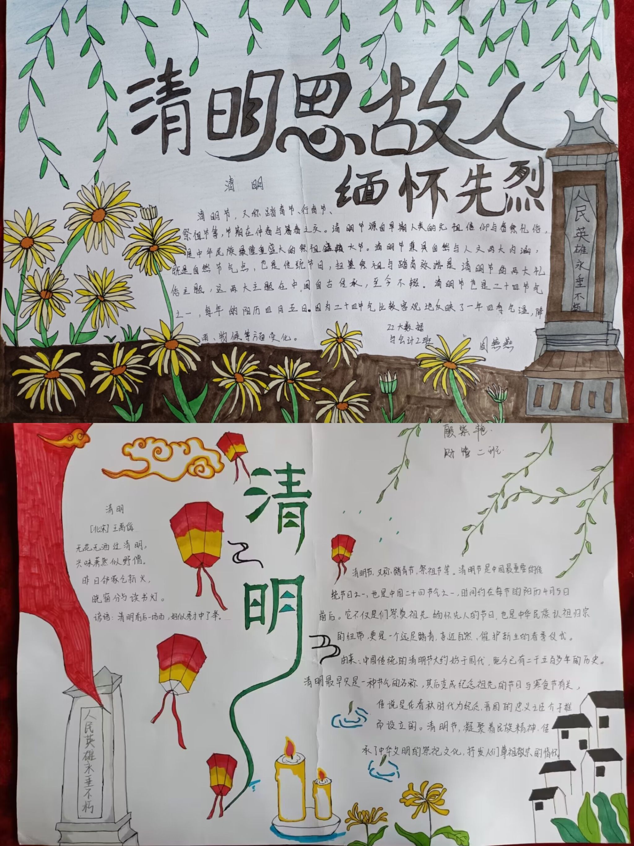 清明节是我国重要的传统节日之一,是我们祭扫祖先、缅怀先烈的日子。为表达对祖先的思念之情,2023年4月5日,管理学院学生会举行了清明节主题手抄报评比活动。