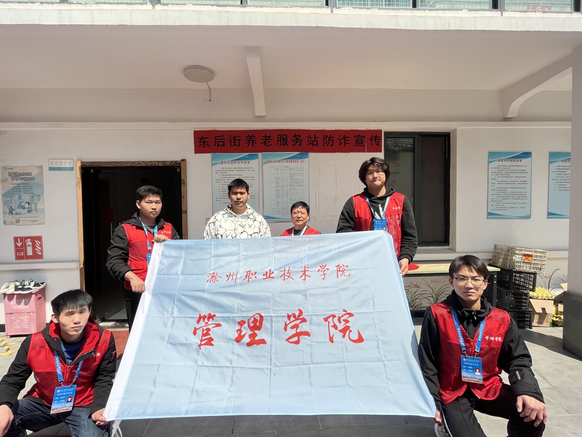 为了进一步提高老年人防诈意识和风险防控能力,有效提升老年群体的自我保护意识。2023年4月7日,管理学院学生会午前往东后街养老服务站针对老年群体开展了“守住养老钱,幸福享晚年”防范诈骗宣传活动。
