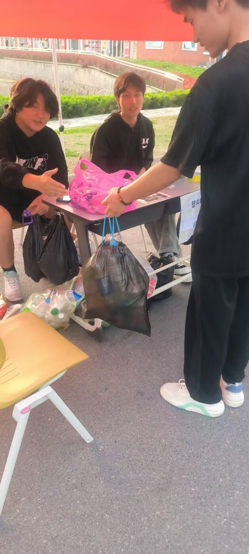 活动开始,志愿者积极向往来的同学大力宣传本次活动,向同学们说明举办此次活动的目的。通过类似以物换物的活动方式,让大家将身边的可回收垃圾回收换物,让垃圾获得新的价值,同时也能让同学们更好的学会垃圾分类,让校园更干净整洁。