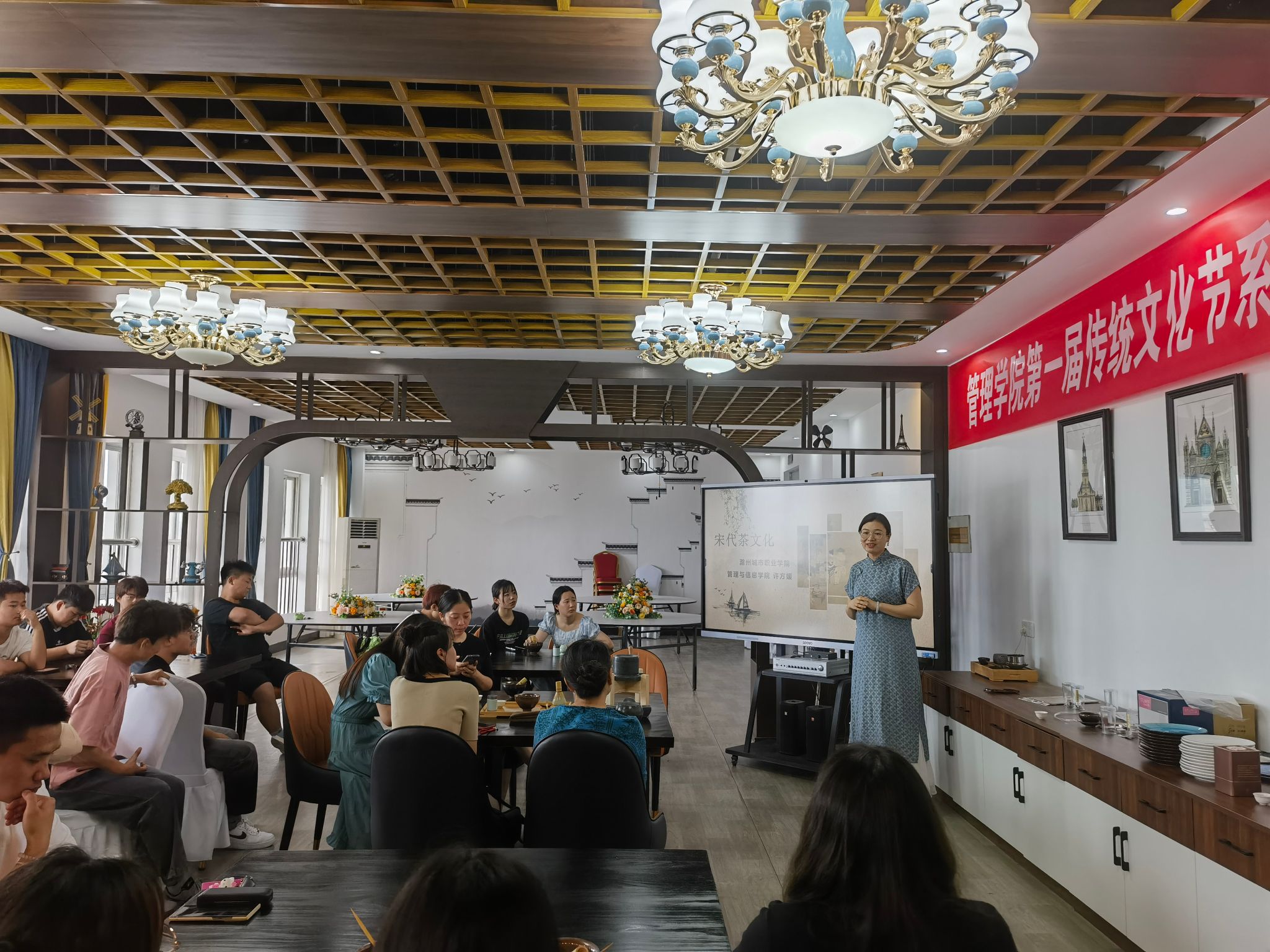 2023年6月7日,管理学院在致真楼1602举办以“古普雅韵,茶道天香”为主题的传统茶艺教学课堂。