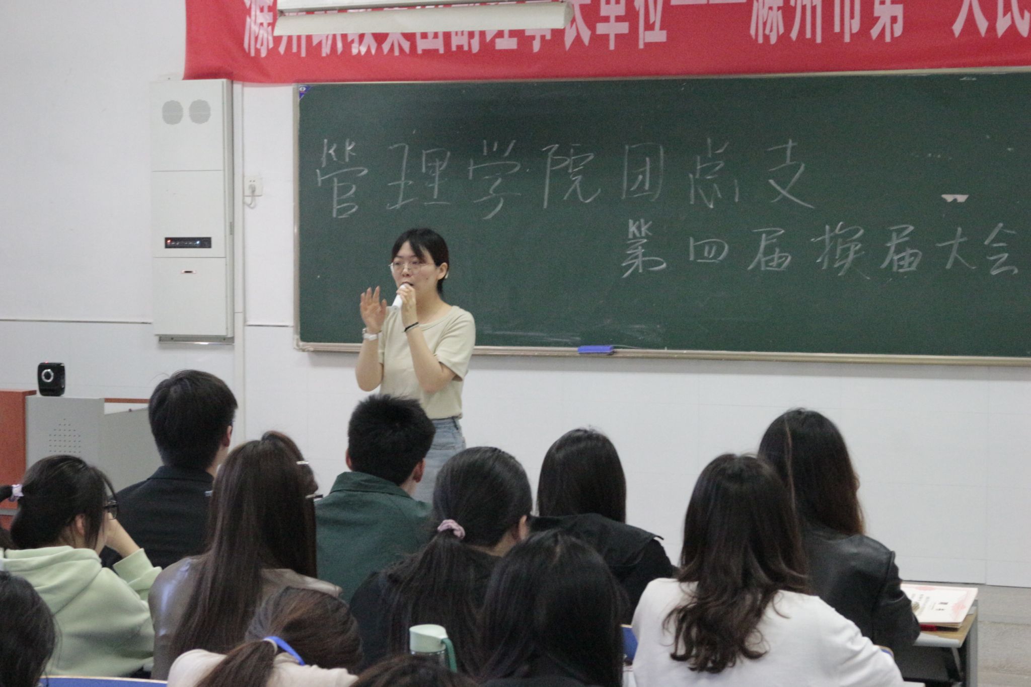 2023年11月1日中午12:00,管理学院团总支在1102教室举行换届大会。为切实加强管理学院团学组织有序发展,完善学生干部队伍建设。第四届团总支干事和第五届团总支干事全体参与。本次换届大会由第四届团总支副书记於美娜主持,团总支书记袁一老师及团总支第四届和第五届的成员参加会议。
