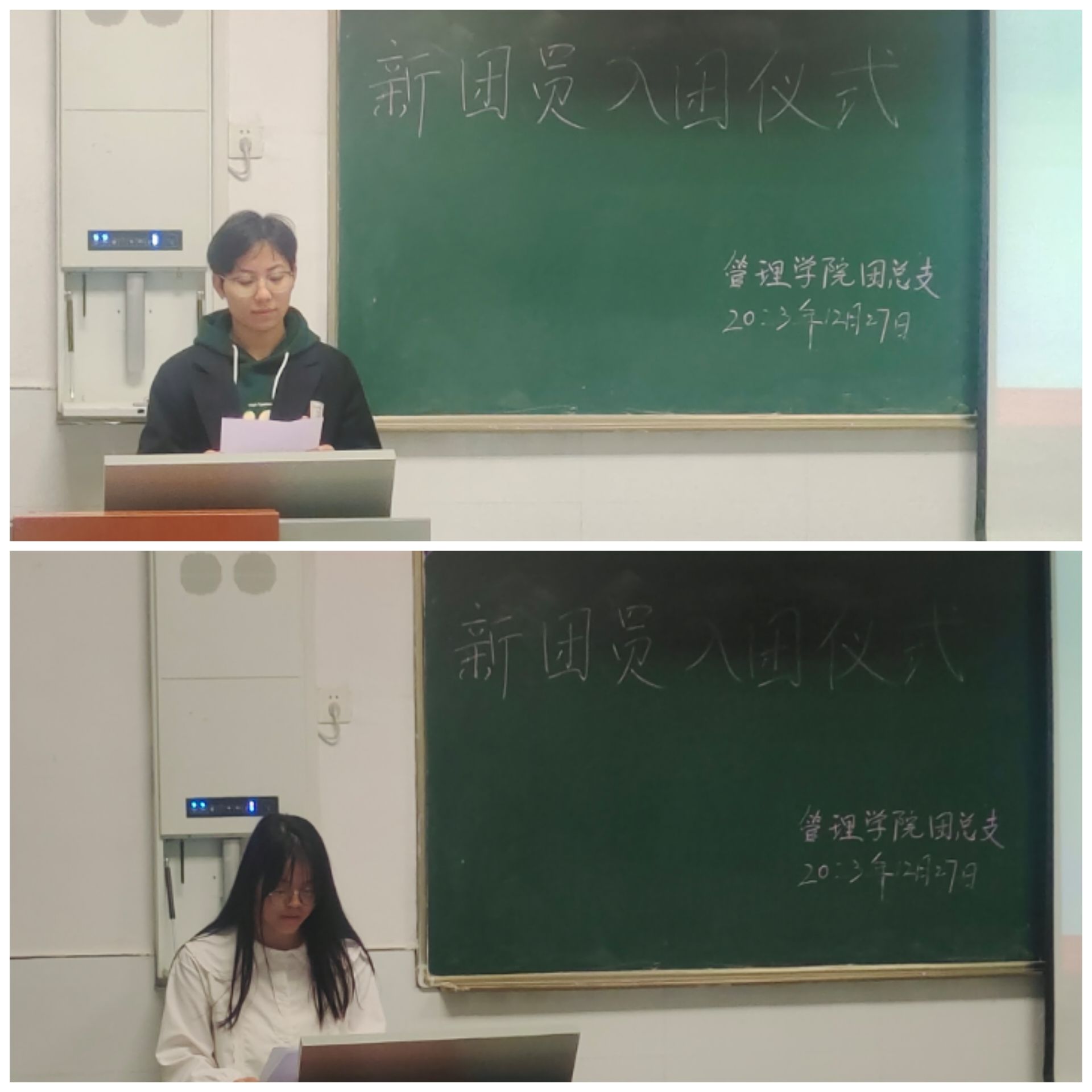 为深入学习贯彻党的二十大精神,引领广大团员永远跟党走、共筑中国梦,切实增强团员的光荣感和使命感以及团组织凝聚力。12月27日管理学院团总支于1102教室开展新发展团员入团仪式。